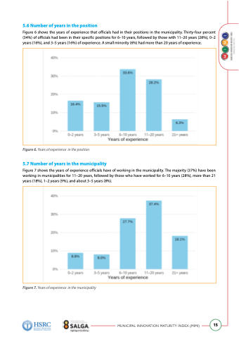 Figure 7 shows the years of experience officials have of working in the municipality. The majority (37%) have been working in municipalities for 11–20 years, followed by those who have worked for 6–10 years (28%), more than 21 years (18%), 1–2 years (9%), and about 3–5 years (8%).