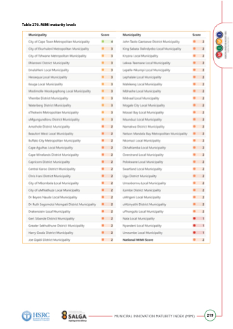 Table 270. MIMI maturity levels MUNICIPAL INNOVATION MATURITY INDEX (MIMI) 219