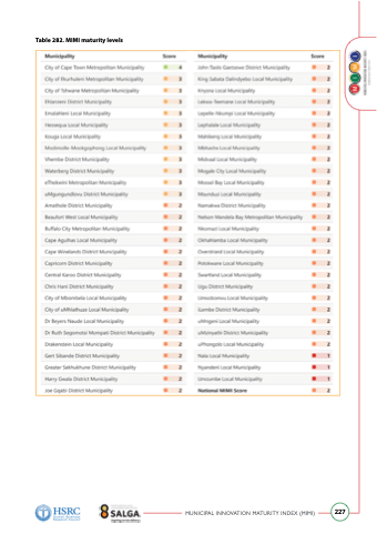 Table 282. MIMI maturity levels MUNICIPAL INNOVATION MATURITY INDEX (MIMI) 227