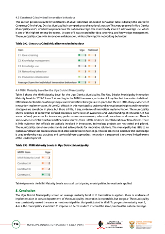 Table 293. MIMI Maturity Levels in ugu District Municipality