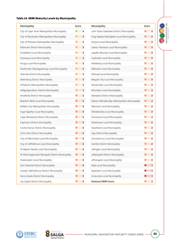 Table 24. MIMI Maturity Levels by Municipality MUNICIPAL INNOVATION MATURITY INDEX (MIMI) 55