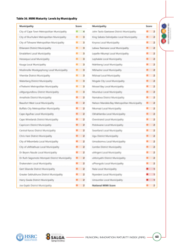 Table 36. MIMI Maturity Levels by Municipality MUNICIPAL INNOVATION MATURITY INDEX (MIMI) 63