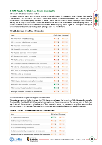 Table 38. Construct A: Enablers of Innovation