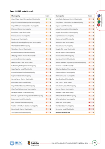 Table 54. MIMI maturity levels MUNICIPAL INNOVATION MATURITY INDEX (MIMI) 75