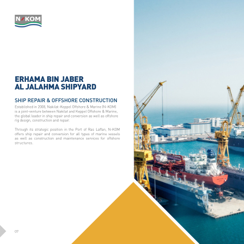 Established in 2008, Nakilat-Keppel Offshore & Marine (N-KOM) is a joint-venture between Nakilat and Keppel Offshore & Marine, the global leader in ship repair and conversion as well as offshore rig design, construction and repair.
