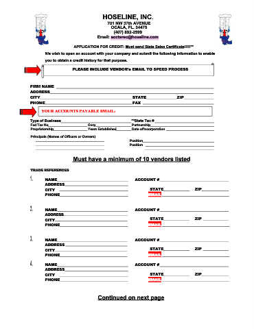 APPLICATION FOR CREDIT: Must send State Sales Certificate!!!!!**