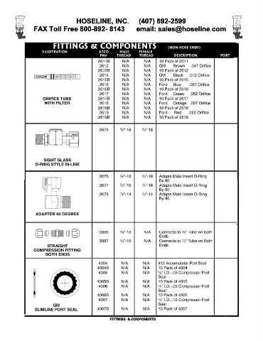 HOSELINE, INC. (407) 892-2599 FAX Toll Free 800-892- 8143 email: sales@hoseline.com 6293 NEW 10 10 STANDARD FITTING “O” RING FITTINGS & COMPONENT
