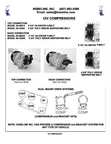 NOTE: HOSELINE INC. CAN PROVIDE A COMPRESSOR and BRACKET SYSTEM FOR