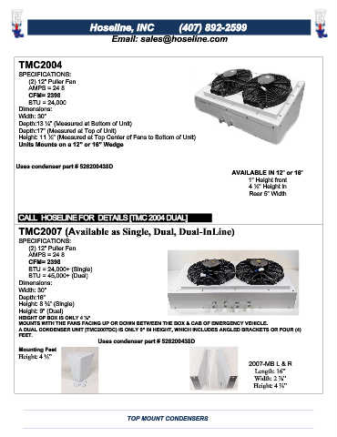 A DUAL CONDENSER UNIT [TMC2007DC) IS ONLY 9” IN HEIGHT, WHICH INCLUDES ANGLED BRACKETS OR FOUR (4)