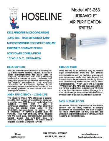 continuous operation! Unlike other ultraviolet The model APS-253 Ultraviolet Air Purification