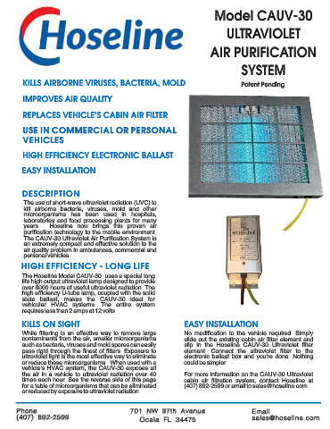the air in a vehicle to ultraviolet radiation over 40 For more information on the CAUV-30 Ultraviolet