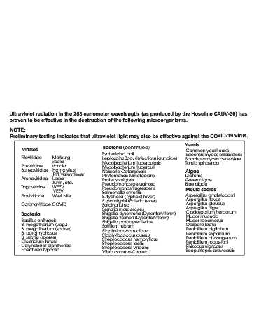 Ultraviolet radiation in the 253 nanometer wavelength (as produced by the Hoseline CAUV-30) has