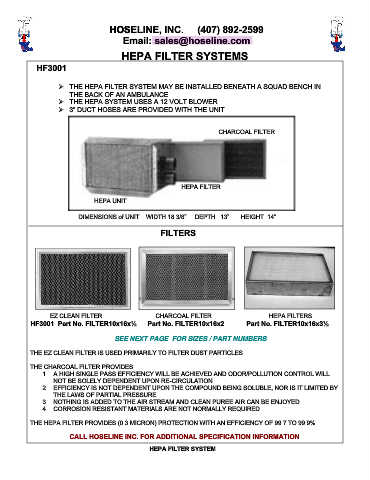 HF3001 Part No. FILTER10x16x½ Part No. FILTER10x16x2 Part No. FILTER10x16x3½