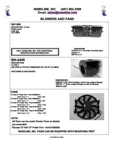 HOSELINE, INC. FANS CAN BE EQUIPPED WITH MOUNTING FEET