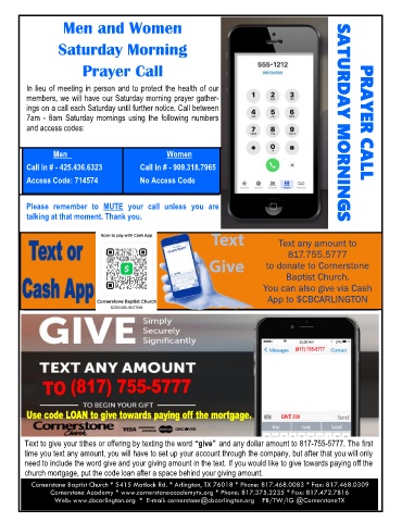 and access codes: SATURDAY MORNINGS PRAYER CALL