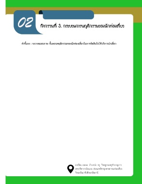 กิจกรรมที่ 3. กระบวนกำรพฤติกรรมของนักท่องเที่ยว ค ำชี้แจง : จงวำดแผนภำพ ขั้นตอนพฤติกรรมของนักท่องเที่ยวในกำรตัดสินใจใช้บริกำรน ำเที่ยว