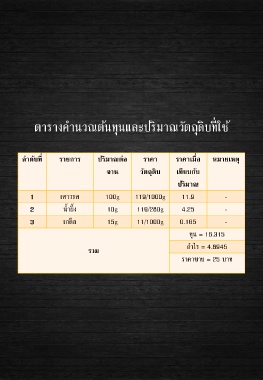 ตารางค านวณต้นทุนและปริมาณวัตถุดิบที่ใช้