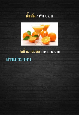 น ้าส้ม รหัส 039 วันที่ 9/12/60 ราคา 10 บาท ส่วนประกอบ