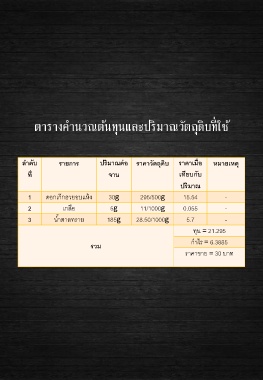 ตารางค านวณต้นทุนและปริมาณวัตถุดิบที่ใช้