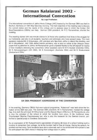 paper that is published in Jaffna. Mr Ramanathan gave a Special thanks to the UK branch for twelve