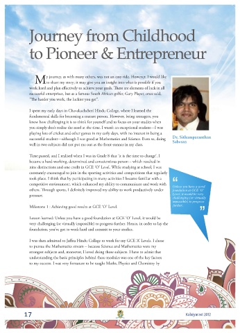 successful student—although I was good at Mathematics and Science. Even so, doing Dr. Sithamparanthan