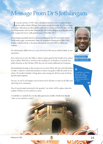 Message From Dr S Jothilingam