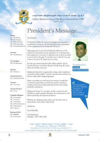 Mr. A Kuhendrarajah On behalf of OBA UK and of the management committee, I