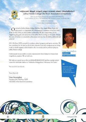 n behalf of Jaffna Hindu College Old Boys New South Wales, I take this