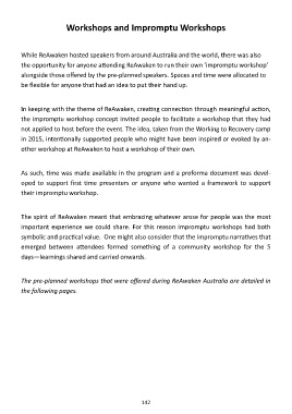 The pre-planned workshops that were offered during ReAwaken Australia are detailed in