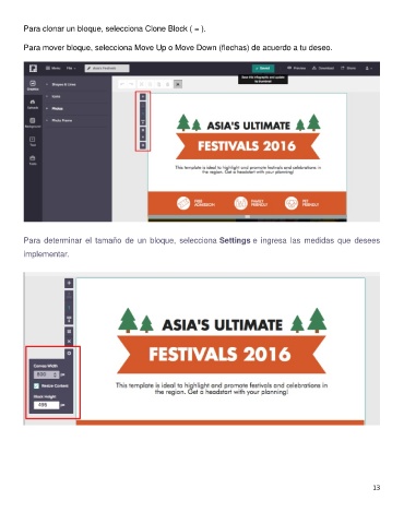 Para  determinar  el  tamaño  de  un  bloque,  selecciona Settings e  ingresa  las  medidas  que  desees