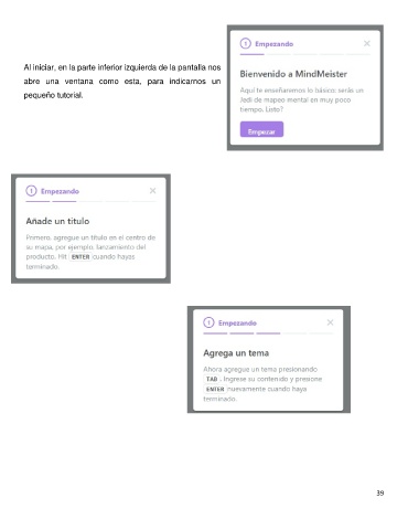 Al iniciar, en la parte inferior izquierda de la pantalla nos abre una ventana como esta, para indicarnos un pequeño tutorial. 39