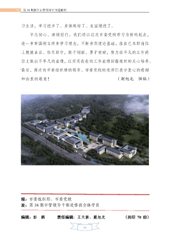19 第 38 期新任市管领导干部进修班 (蒯旭光 供稿) 报:市委组织部、市委党校 发:第 38 期市管领导干部进修班全体学员 编辑:彭 鹏 责任编辑:王天新、蒯旭光 (共印 70 份) 19