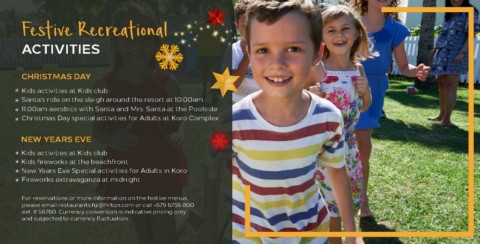 * Christmas Day special activities for Adults at Koro Complex
