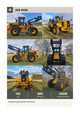 4 JCB 435S year hours LOCATION 2016 3 000 approx Kairanga North Island Auto grease good tidy loader well serviced