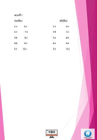 หน่วยที่ 7 ก่อนเรียน หลังเรียน 1.ก 6.ก 1.ก 6.ก 2.ก 7.ข 2.ข 7.ก 3.ข 8.ง 3.ง 8.ข 4.ข 9.ก 4.ก 9.ข 5.ง 10.ง 5.ง 10.ง 194