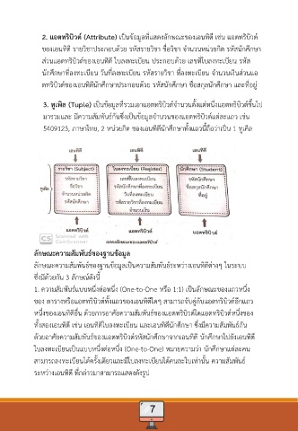 2. แอตทริบิวต์ (Attribute) เป็นข้อมูลที่แสดงลักษณะของเอนทิตี เช่น แอตทริบิวต์