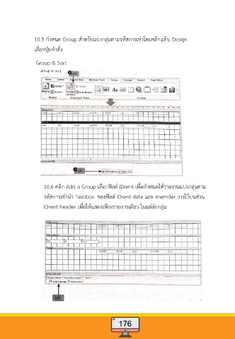 10.5 กําหนด Group สําหรับแบ่งกลุ่มตามรหัสการเช่าโดยคลิกแท็บ Design
