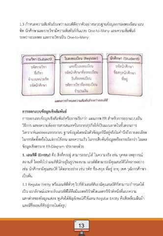 1.3 กําหนดความสัมพันธ์ระหว่างเอนทิตีจากตัวอย่างระบบฐานข้อมูลการลงทะเบียน เอน