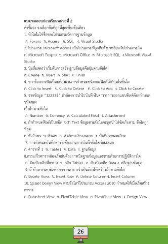ก. Foxpro ข. Access ค. SQL ง. Visual Studio