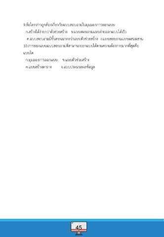 9.ข้อใดกล่าวถูกต้องเกี่ยวกับแบบสอบถามในมุมมองการออกแบบ