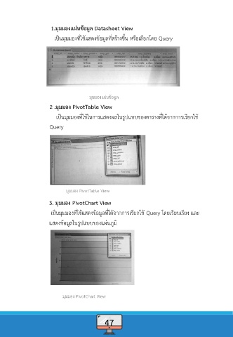 เป็นมุมมองที่ใช้แสดงข้อมูลที่ได้จากการเรียกใช้ Query โดยเรียบเรียง และ