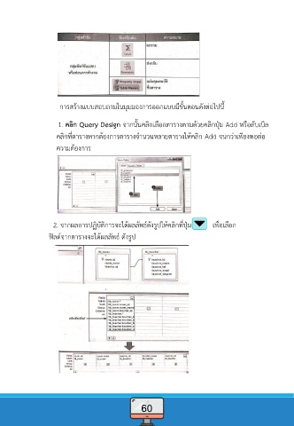 1. คลิก Query Design จากนั้นคลิกเลือกตารางตามด้วยคลิกปุ่ม Add หรือดับเบิล