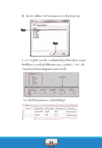 ฟิลด์ที่ต้องการ จากนั้นคลิกใต้ฟิลด์เพศ (emp_sex)พิมพ์ = “ชาย” เพื่อ