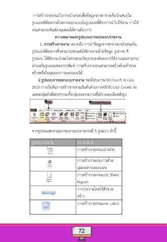 1. กำรสร้ำงรำยงำน หมายถึง การนําข้อมูลจากตารางมานําเสนอใน