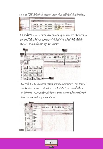 คอนโทรลในรายงาน การเลือกด้วยการคลิกคําสั่ง Fonts จากนั้นเลื่อน