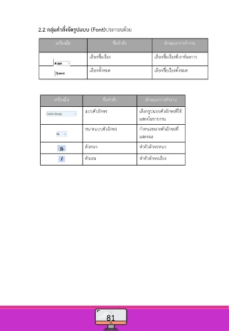 2.2 กลุ่มค ำสั่งจัดรูปแบบ (Font)ประกอบด้วย