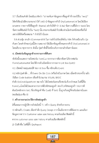 5.7 เริ่มเขียนคําสั่ง โดยมีแนวคิดว่า “เราจะค้นหาข้อมูลจากชื่อลูกค้าที่กรอกไว้ใน Text2”