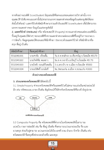 จากตัวอย่างเอนทิตี ScoreStudent มีคุณสมบัติคือคะแนนของแต่ละรายวิชาเท่านั้น จาก