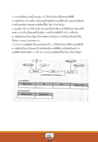 7.3 ความ ความสัมพันธ์ เป็นแบบหนึ่งต่อหนึ่ง (1:1)ให้นําค่าไพรมารีคีย์ของเอนทิตีที่มี