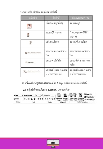2. แท็บค ำสั่งจัดรูปแบบประกอบด้วย 5 กลุ่ม ซึ่งมีรายละเอียดดังต่อไปนี้